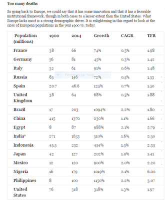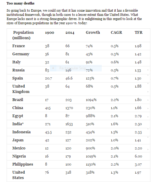 From NewGeography - - Limited European economic growth in the context of the past (i.e., too many wars) and the present/future (i.e., declining birth rates).